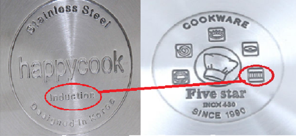 Phần dưới của đáy nồi sẽ có 2 kiểu ký hiệu nồi chuyên dùng cho bếp từ: