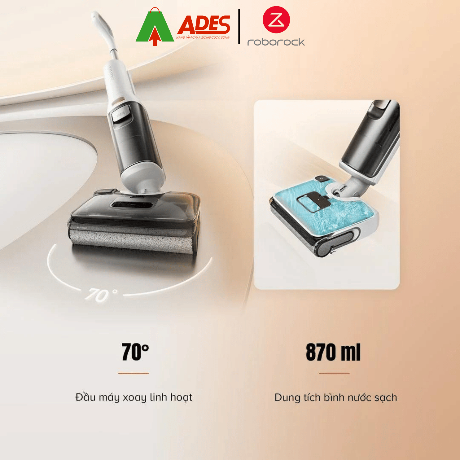 - Đầu bàn chải xoay 70° dễ dàng loại bỏ các vết bẩn cứng đầu