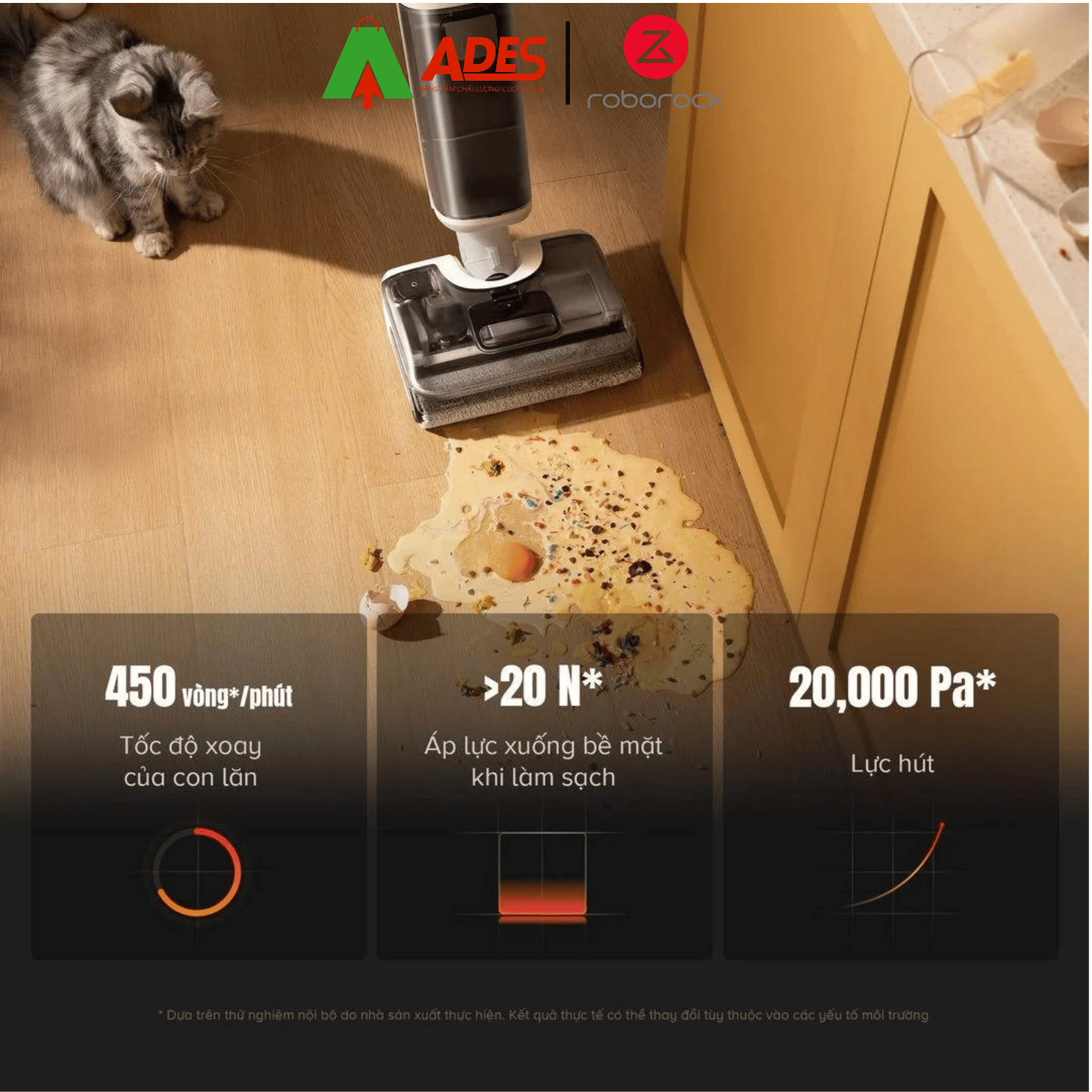 Lực hút mạnh mẽ 20.000 Pa, phù hợp cho việc làm sạch chuyên sâu trên nhiều bề mặt