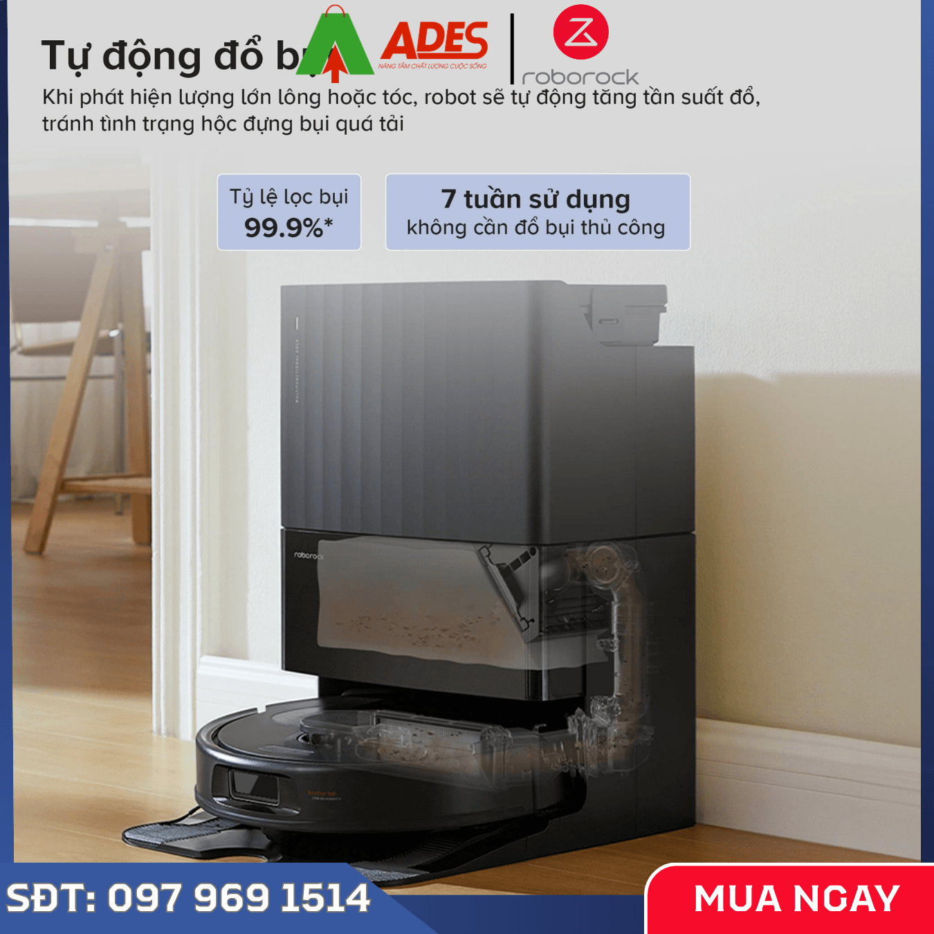 - Tự động hút bụi từ robot vào túi chứa