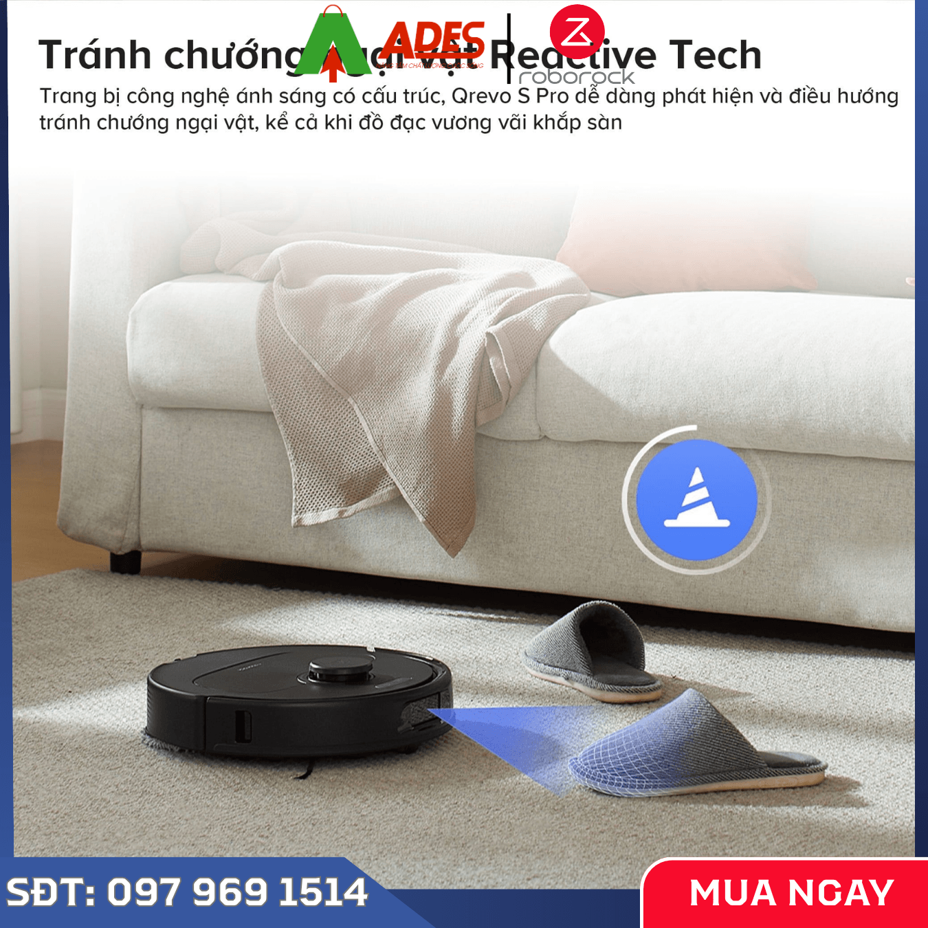 Roborock Qrevo S Pro tích hợp công nghệ Reactive Tech, giúp nhận diện và né tránh vật cản một cách thông minh. Điều này giúp robot di chuyển linh hoạt trong không gian nhiều đồ đạc mà không bị mắc kẹt hay va chạm.