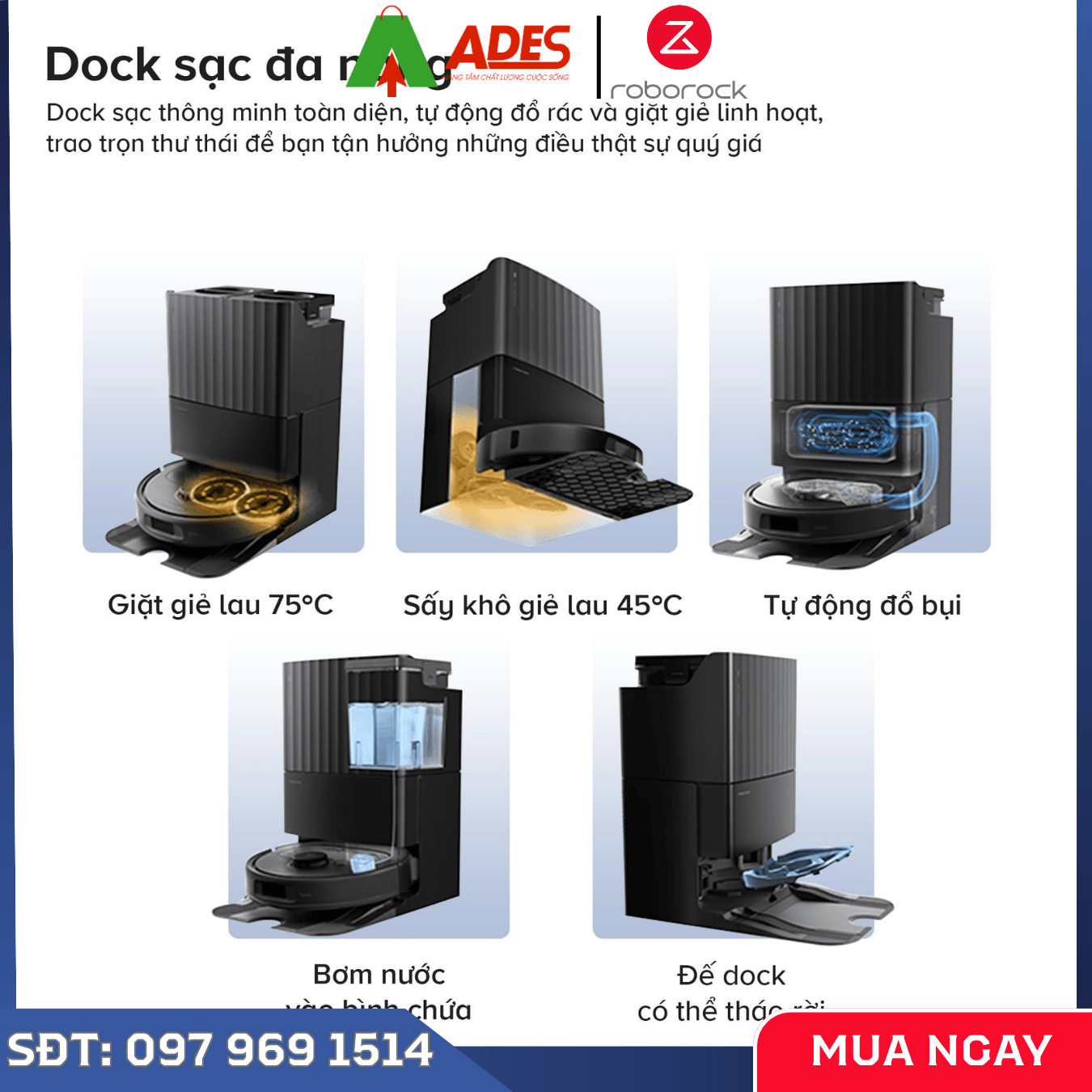 Điểm nổi bật của Roborock Qrevo S Pro chính là dock sạc đa chức năng với nhiều tính năng tự động: